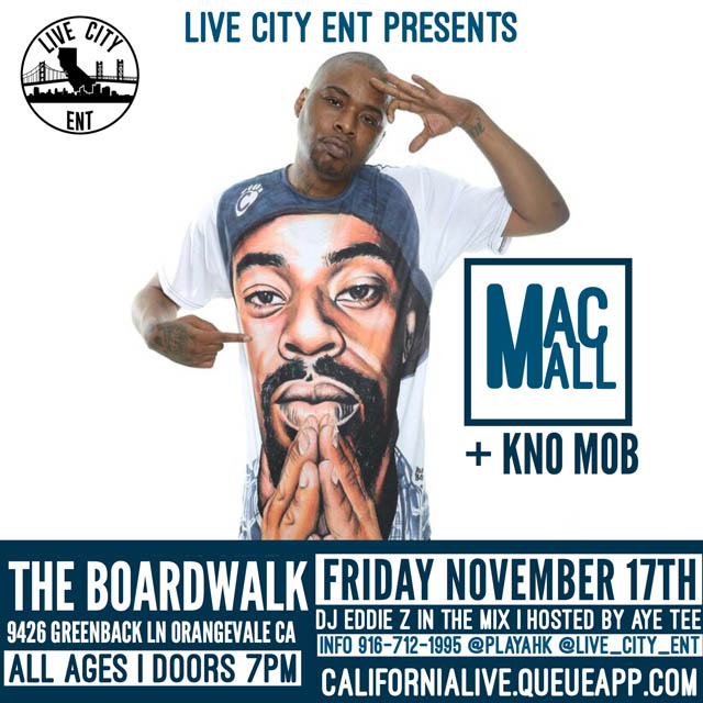 Live City Ent and California Live present Mac Mall (Rap/Hip-Hop, Vallejo) with Kno Mob (Rap/Hip-Hop, Vallejo) plus more TBA. Hosted by Aye Tee with DJ Eddie Z in the mix.